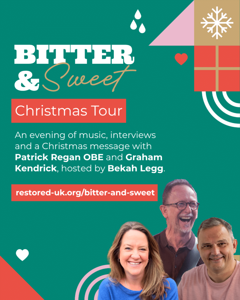 Christmas is a time of celebration, but it can also be difficult for many. When faced with challenges, how can we find comfort in Immanuel, God with us? Join Patrick Regan OBE and Graham Kendrick for an evening of music, interviews and a Christmas message, hosted by Bekah Legg (CEO, Restored).