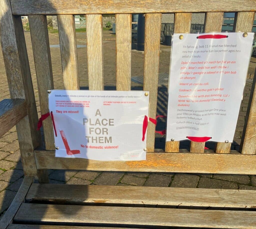 On Wednesday I took my dog for her walk and we always visit a particular bench – on a sunny day it’s my Psalm 121 bench, as you can see the mountains. I often pray or cry here. Anyway, I am sitting here telling God how I feel and it occurs to me that I am sitting in a memorial garden in my village – what better place to remember these women! So, I get home, pray for courage and look up the phone number of the person responsible for the garden. I call her. I live in Wales, so the poster has to be bilingual, in Welsh as well as English, and I’m fully expecting a NO. But, she listens, grants permission, and even agrees to help me translate into welsh, which I’m astounded by!