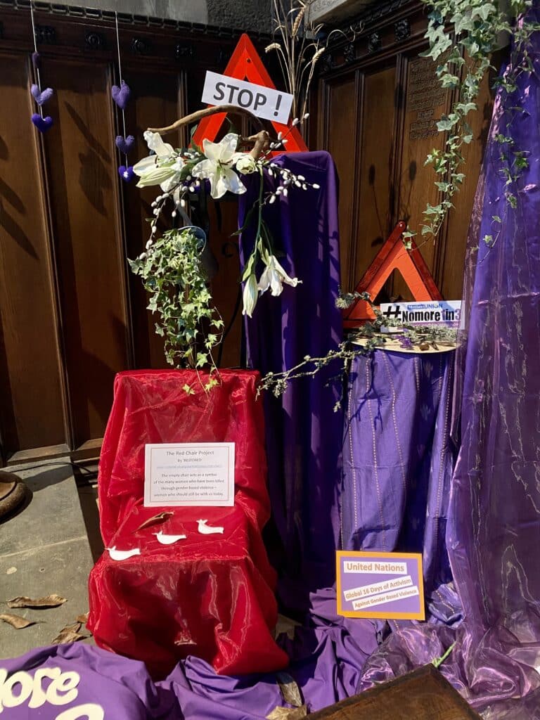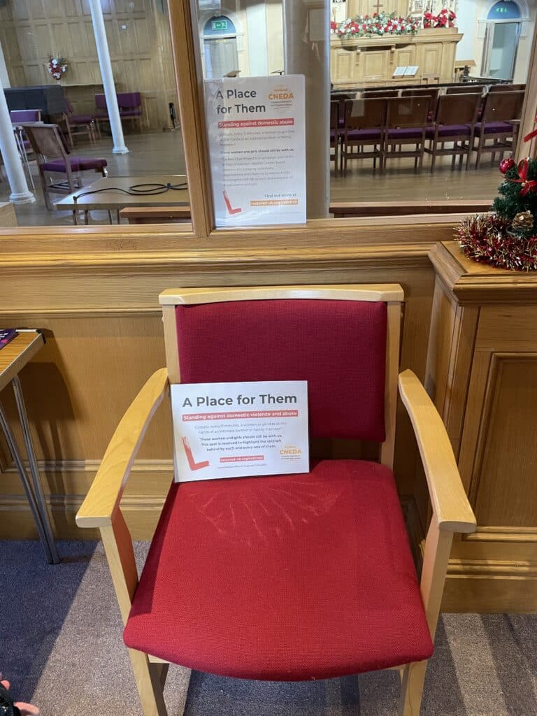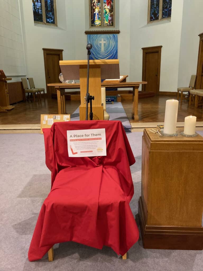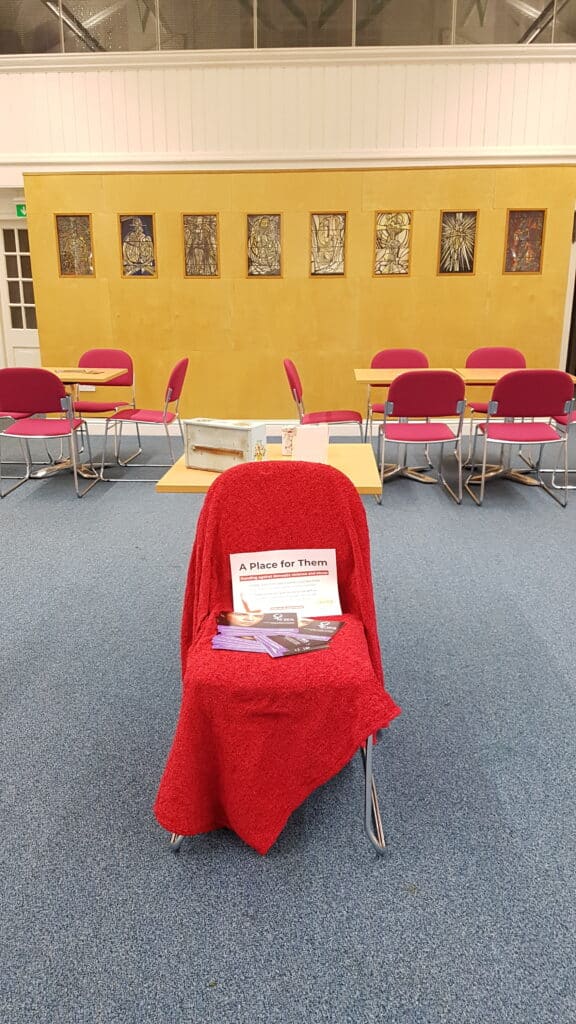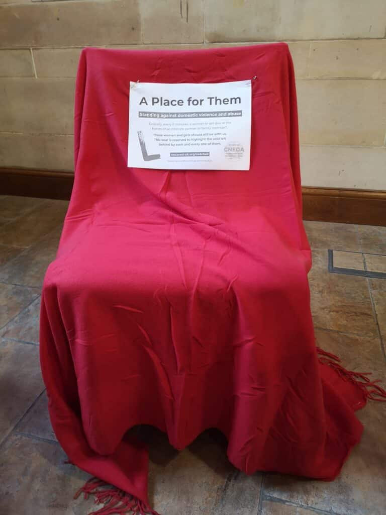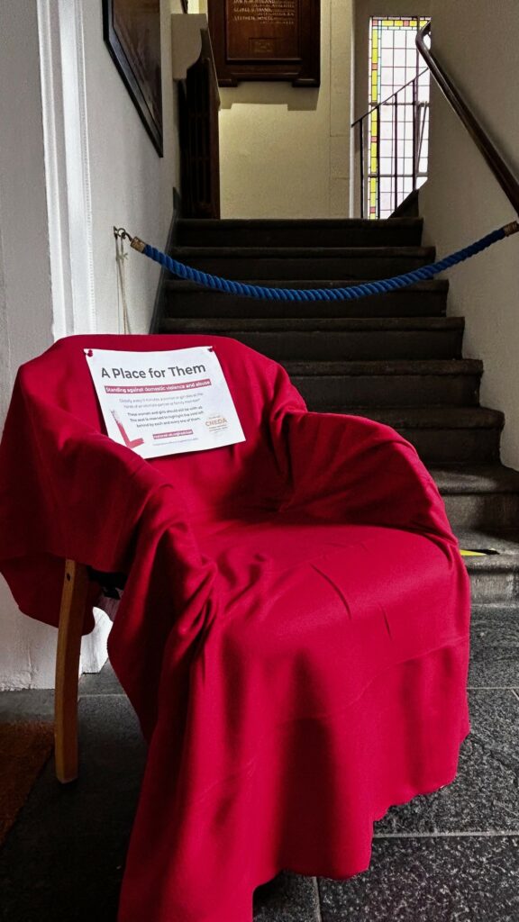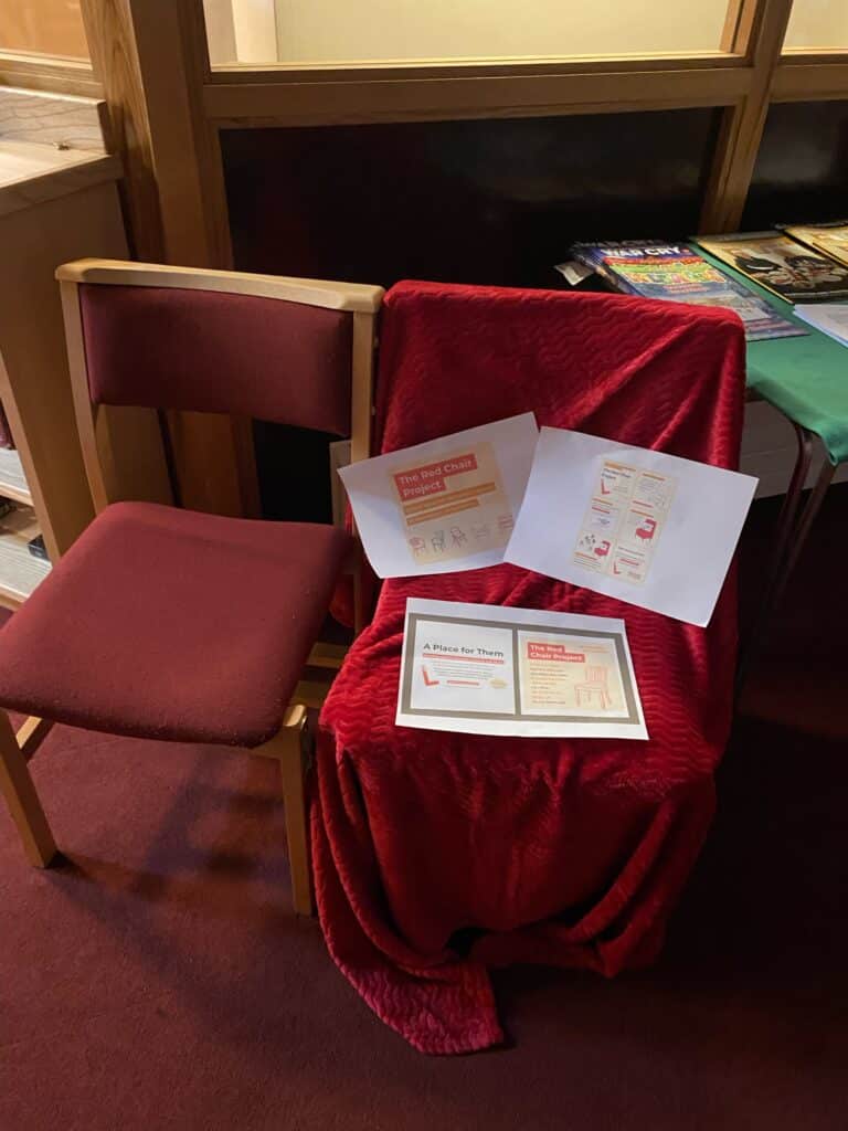 Each year during the UN’s 16 Days of Activism against gender-based violence, we join in with the Red Chair Project: an international campaign to raise awareness of domestic abuse and commemorate the women and girls lost each year through gender-based violence. Churches and individuals from across the UK and beyond get involved by designating a Red Chair – take a look at the gallery below.