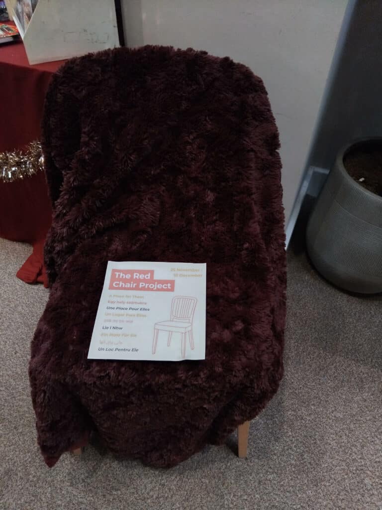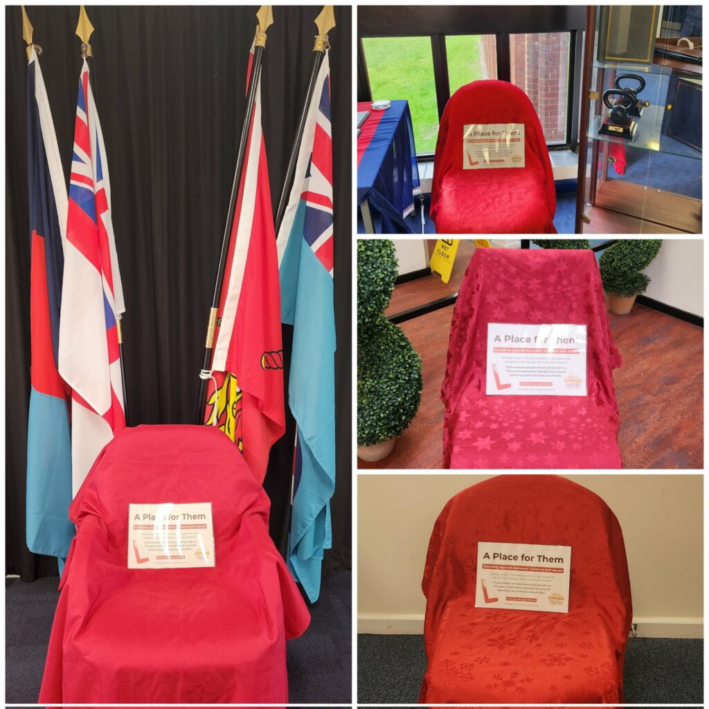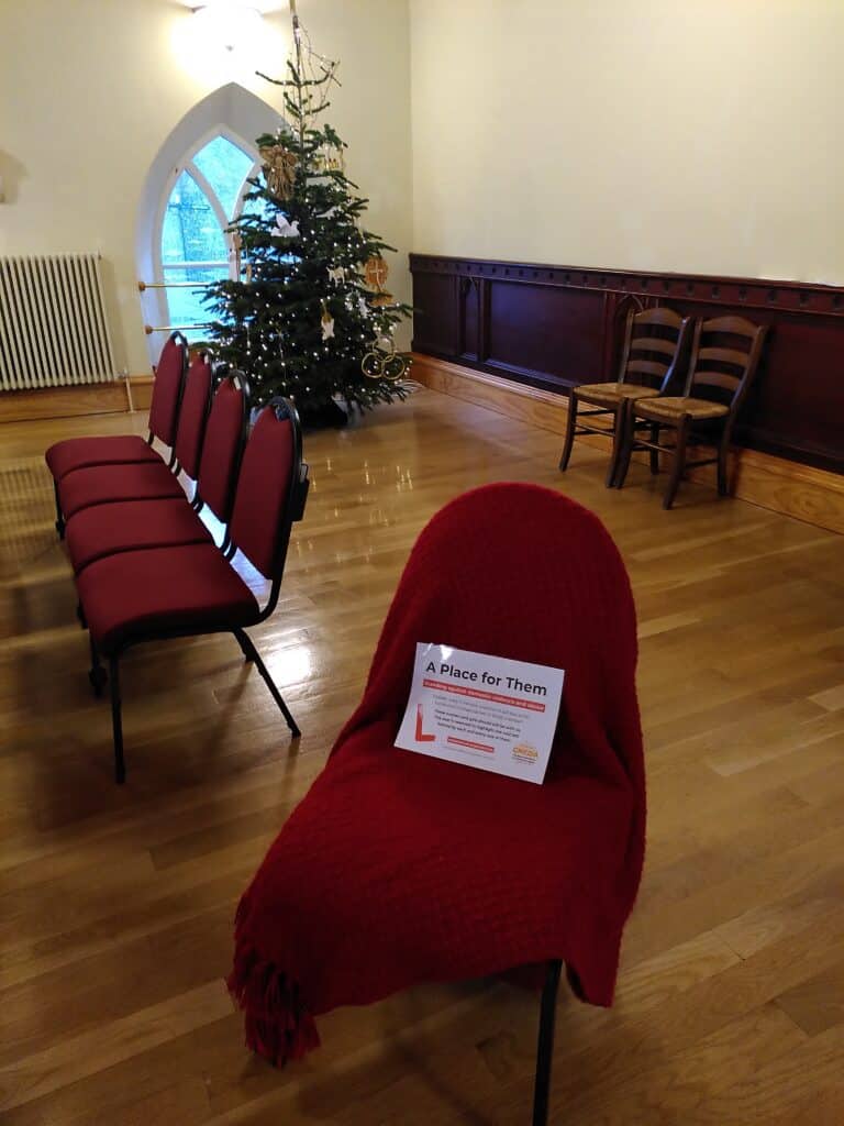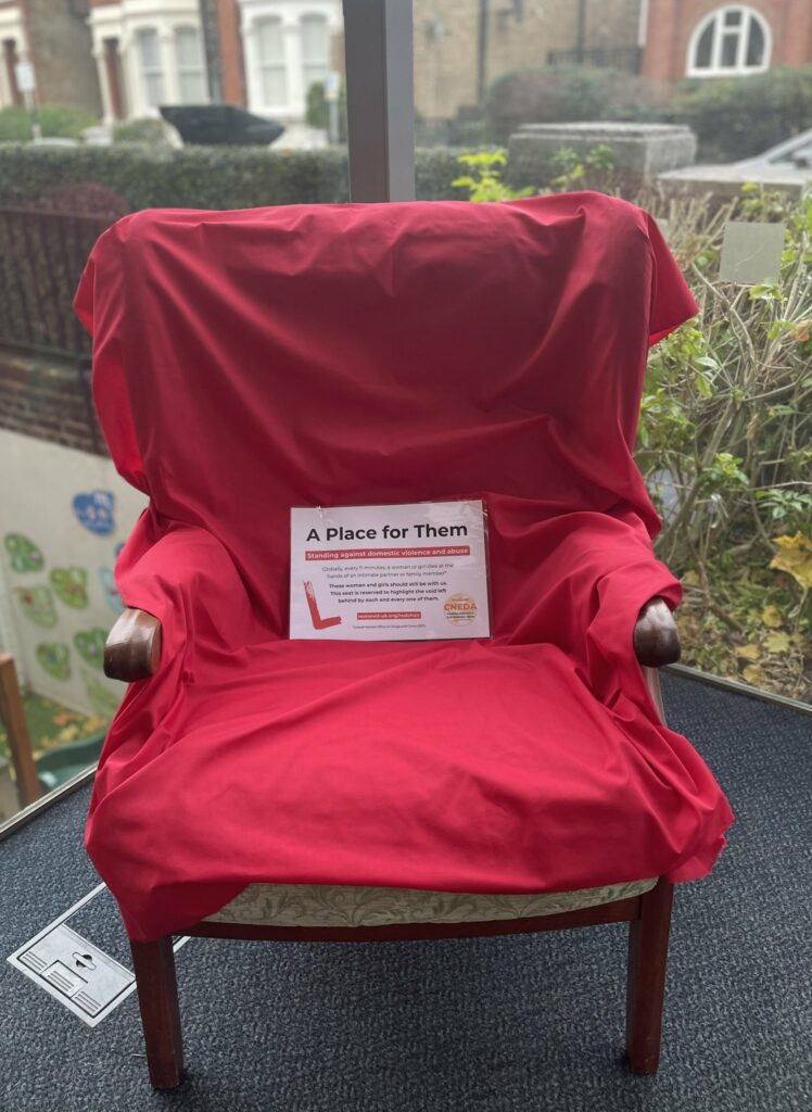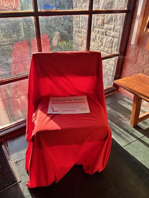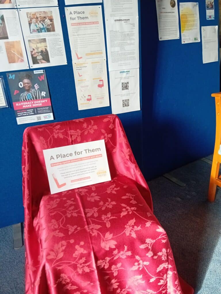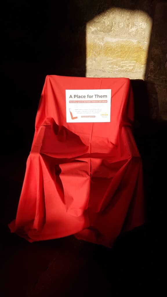 Each year during the UN’s 16 Days of Activism against gender-based violence, we join in with the Red Chair Project: an international campaign to raise awareness of domestic abuse and commemorate the women and girls lost each year through gender-based violence. Churches and individuals from across the UK and beyond get involved by designating a Red Chair – take a look at the gallery below.
